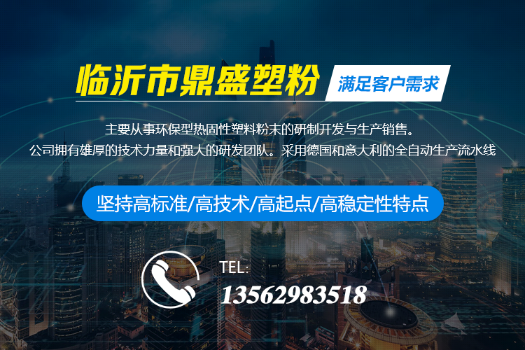 臨沂市鼎盛塑粉有限公司源于2015年3月,公司坐落于臨沂市河?xùn)|區(qū)后翟店工業(yè)園區(qū)內(nèi)。主要從事環(huán)保型熱固性塑料粉末的研制開發(fā)與生產(chǎn)銷售。公司擁有雄厚的技術(shù)力量和強大的研發(fā)團(tuán)隊。采用德國和意大利的全自動生產(chǎn)流水線,年生產(chǎn)各類高端環(huán)保塑料粉末5000余噸,其中出口2000多噸。